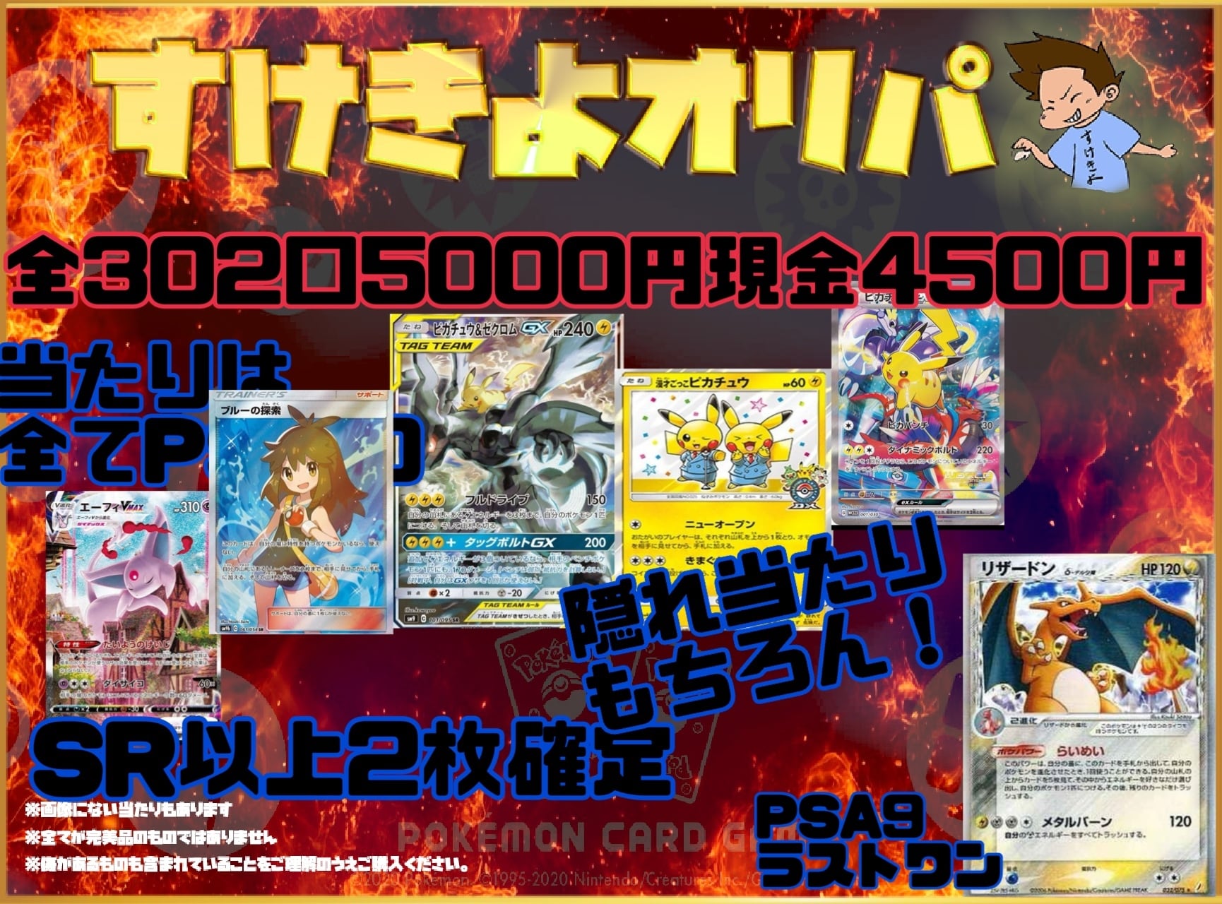 ポケモンカード すけきよオリパ ピカチュウ&ゼクロム 当たりは全てPSA 高額 ラストワン賞